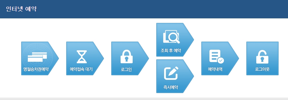 설날기차료 인터넷 예매 순서는 홈페이지에서 명절승차권 예약 메뉴를 선택한 후 예약접속 대기 과정을 거쳐 로그인 한 후 조회 후 예약 또는 즉시예약을 하고 예약내역 확인한 후 잘 되었다면 로그아웃 하면 됩니다.