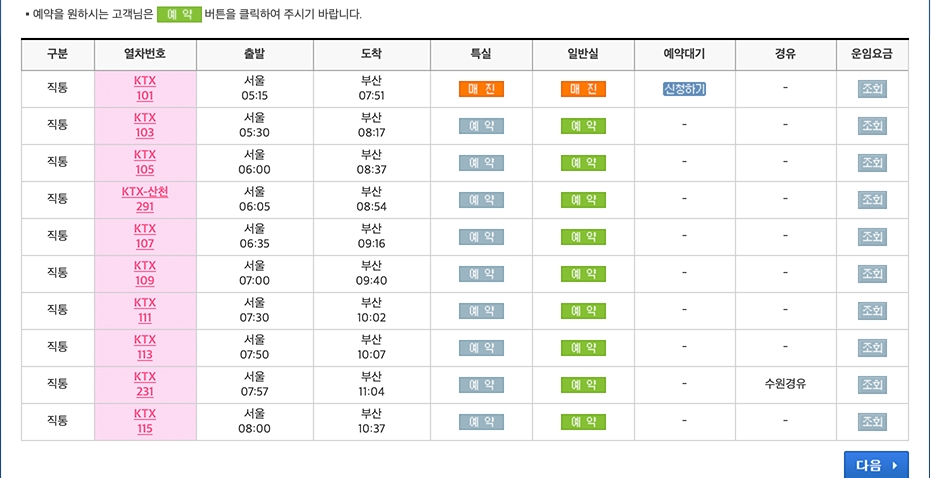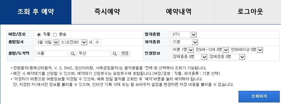 설날기차표 예매 하게 될 때 자신이 원하는 날짜의 원하는 시간대에 좌석이 있는지 조회 후 확인하는 경우가 있을 수 있고 바로 예매하기를 선택할 수도 있습니다.